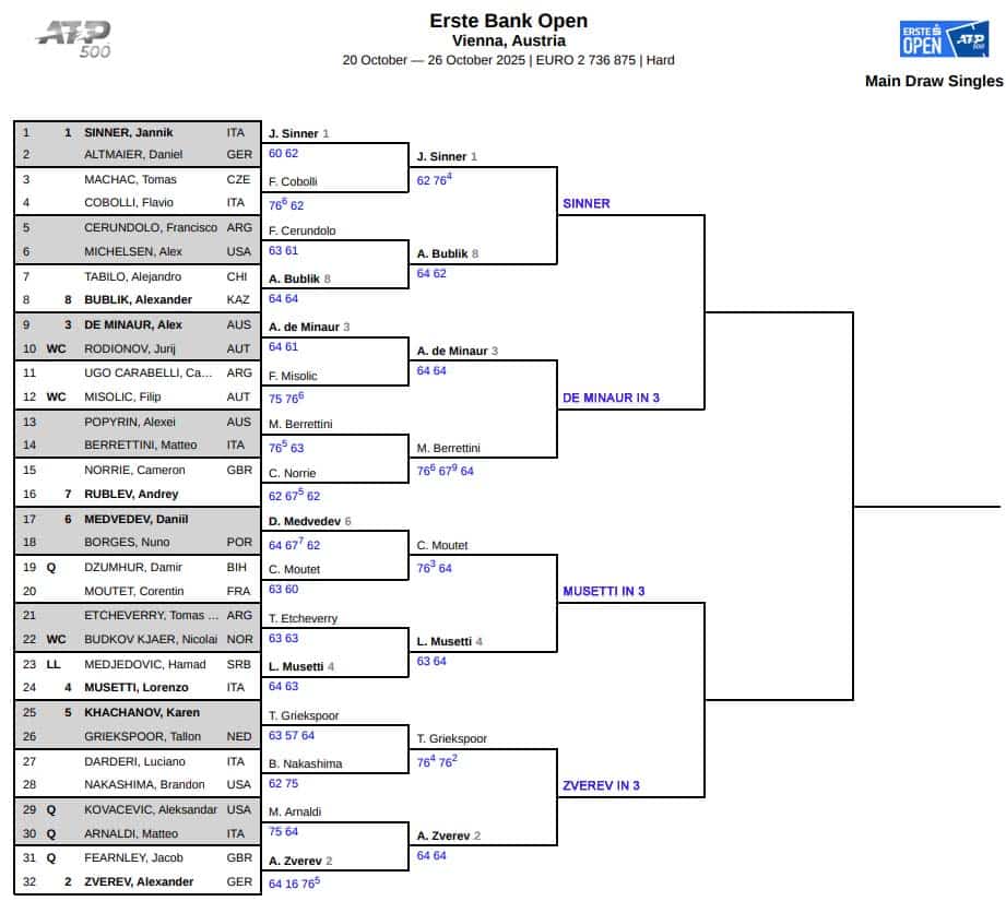 ATP Vienna, Quarter Final Predictions