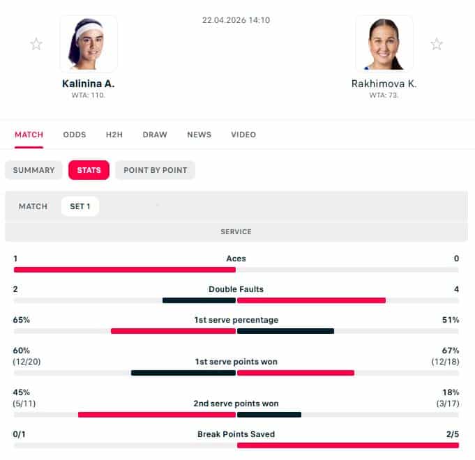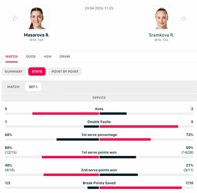 Stats for the set were much better for Masarova. A terrible set from Sramkova, especially on second serve.