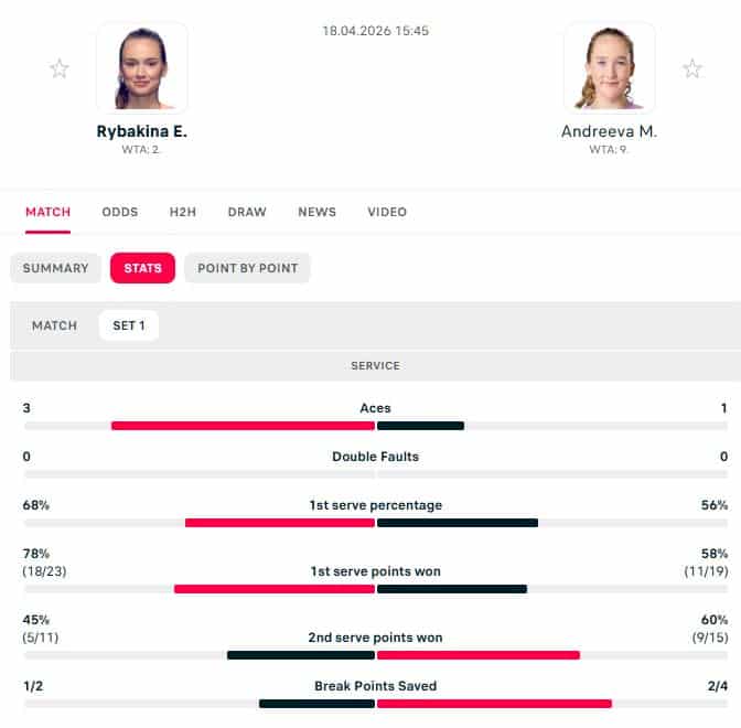 Rybakina 1.82 v Andreeva