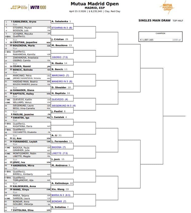 Masarova reached the 3rd round as qualifier last year. CH q final in July. CH final in May.