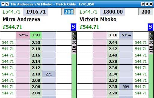 In the next game, Andreeva was broken yet again! I laid Mboko at 1.55. No liability on the position. In the next game, Mboko was broken to 30. I hedged at 2.00. This time, I hedged evenly. Mboko’s level had dropped but Andreeva hadn’t improved by much, if at all.