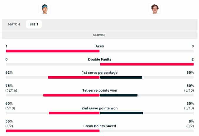 The first 6 games of the second set were all holds with no break points. Buse served at 3-3 and was broken to 30. Tabilo followed up with a hold to 15. In the next game, Buse was again broken. He saved 3 break points but Tabilo took the 4th break chance to win the match.