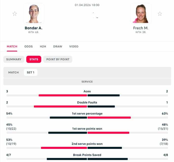 Bondar had a tight 2 sets win in the 1st round.