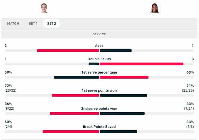 Gauff did improve her first serve % a little in the second set. There wasn’t too much between the 2 players if you ignore the 8 double faults for Gauff!