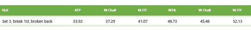 Svitolina served first in the deciding set. She had 2 game points but was eventually broken. As I had some profit to play with, I wanted to back Svitolina. I had favoured Svitolina pre match and in WTA 3rd sets on hard courts, the player breaking first gets broken back 48.73% of the time.